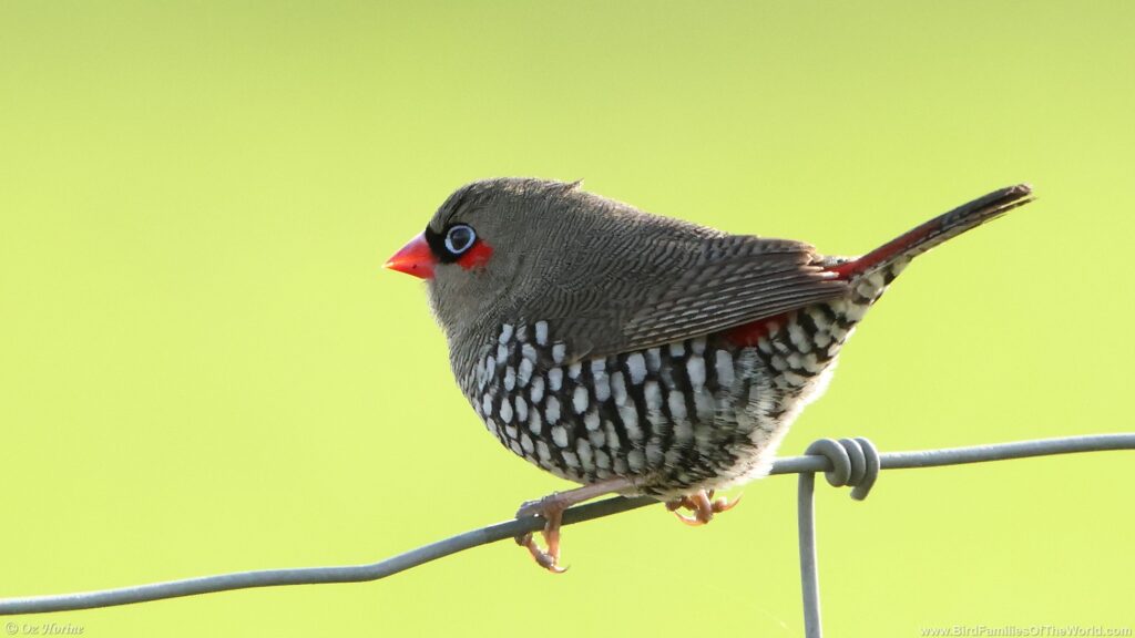 Red-eared Firetail (Stagonopleura oculata) southwestern Western Australia endemic, share the genus with Diamond Firetail (Stagonopleura guttata) and Beautiful Firetail (Stagonopleura bella)