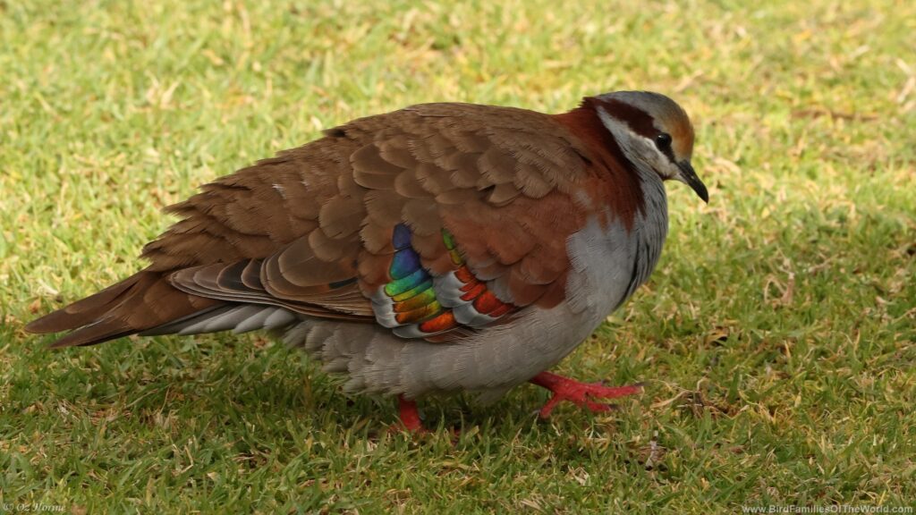 Ticking my first Brush Bronzewing was not easy. Although I heard it already at the car parking of Belair National Park, SA, I had to climb some hills, scan treetops and finally got the bird between some twigs, a bit far, in unfriendly position. And here, at Cheynes Beach Caravan Park, it just feeding from the grass among the RVs..