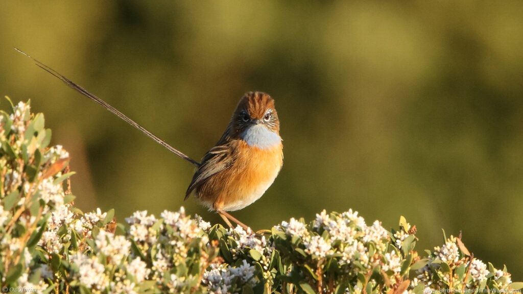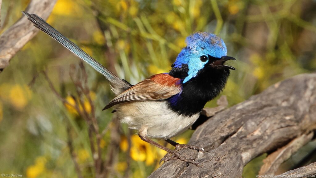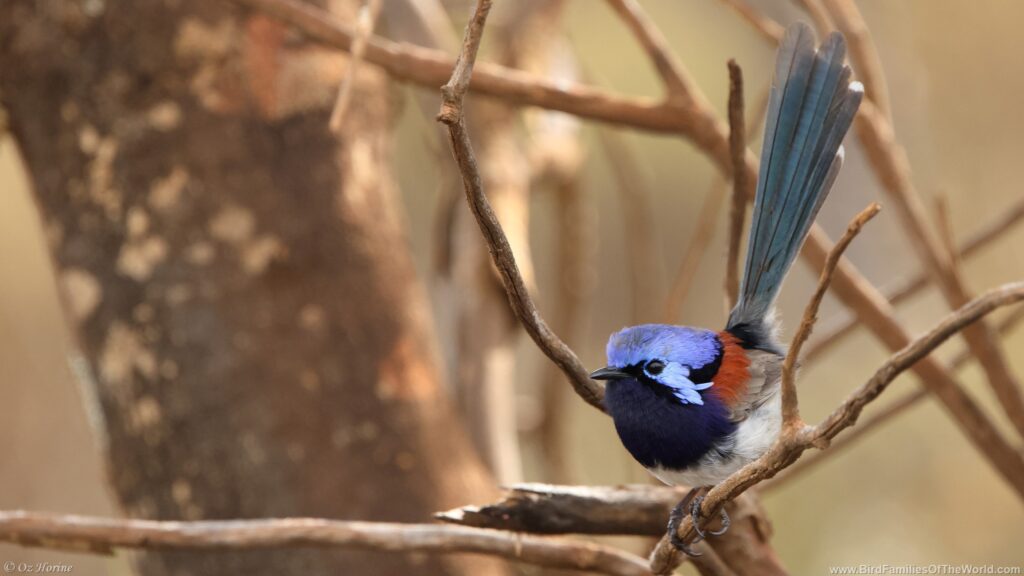 Purple-backed Fairywren (Malurus assimilis). Out of 33 members of Maluridae (Grasswrens, Fairywrens, and Emu-wrens), 28 endemic to Australia: 14 Grasswrens (genus Amytornis), 3 Emu-wrens (genus Stipiturus) and 11 Fairywrens (genus Malurus). 5 other Fairywrens are in New Guinea (Genus Malurus, Sipodotus, Clytomyias & Chenorhamphus), following AviList 2025 taxonomy, as updated already in www.BirdFamiliesOfTheWorld. com.