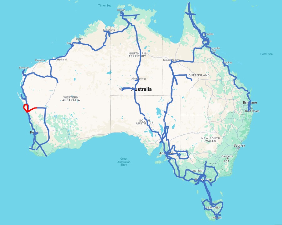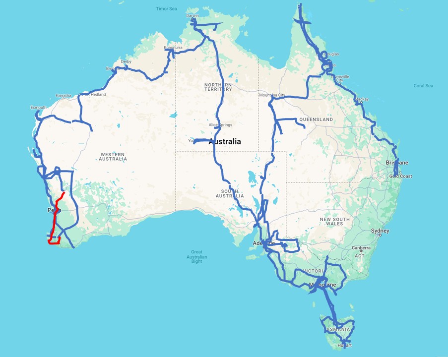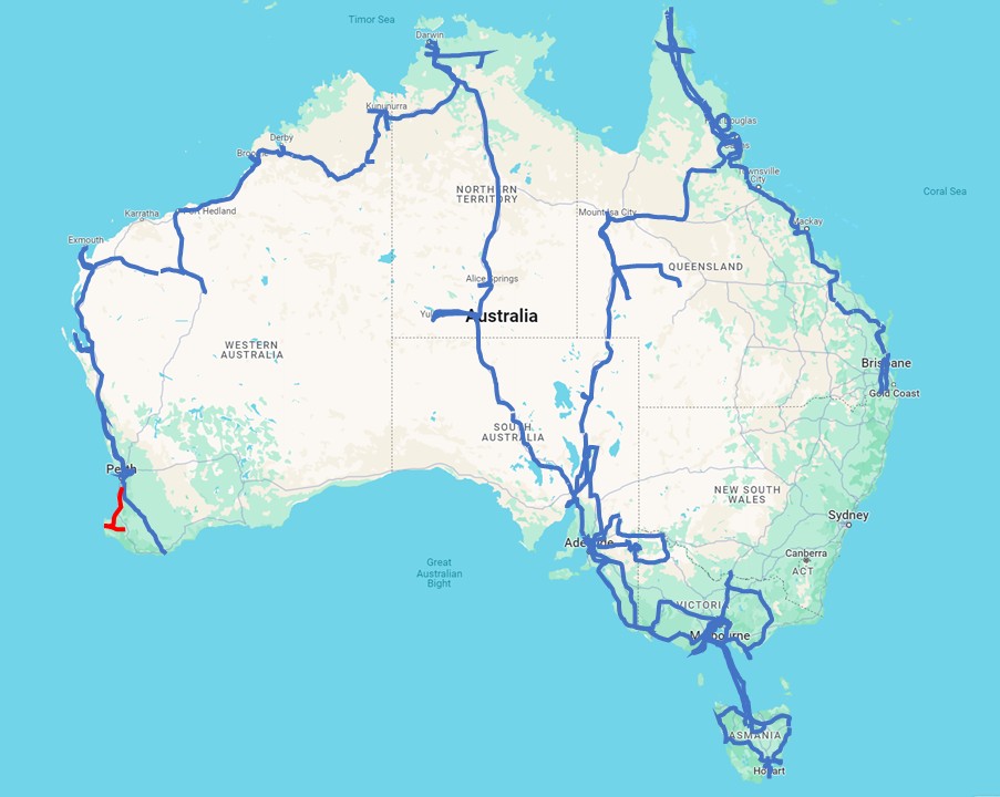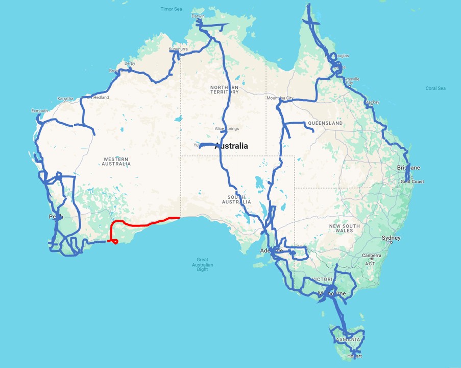 Big Zigzag Travelled so far: 56700 km (this 6 days week 1500 km)